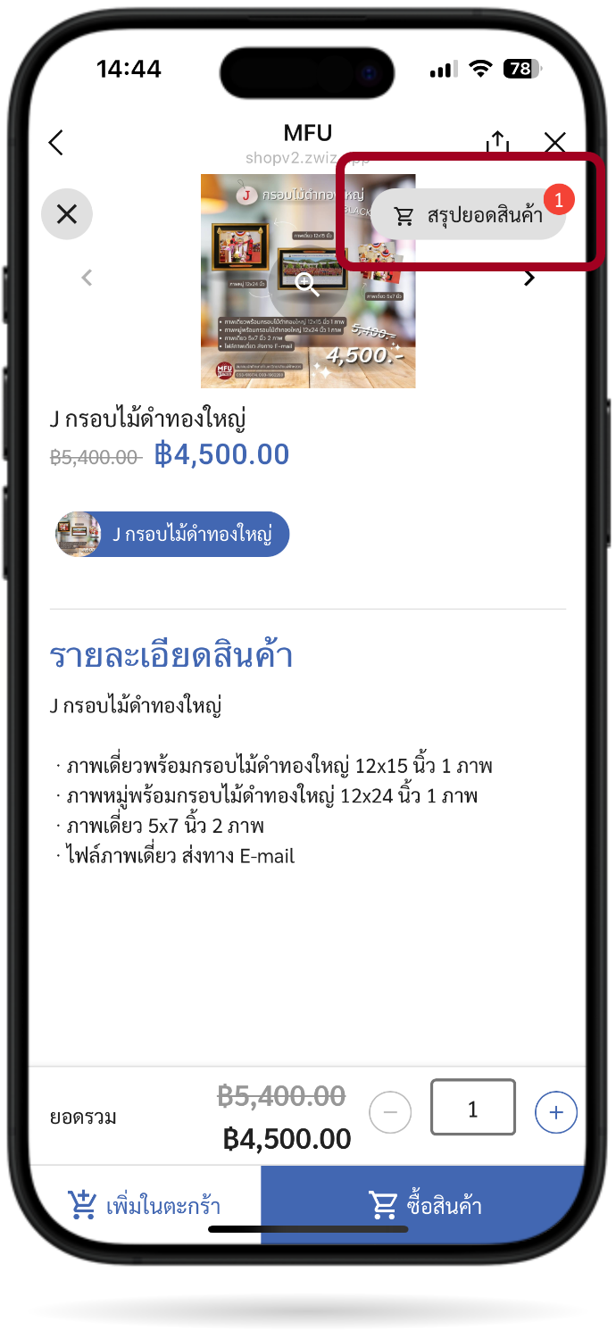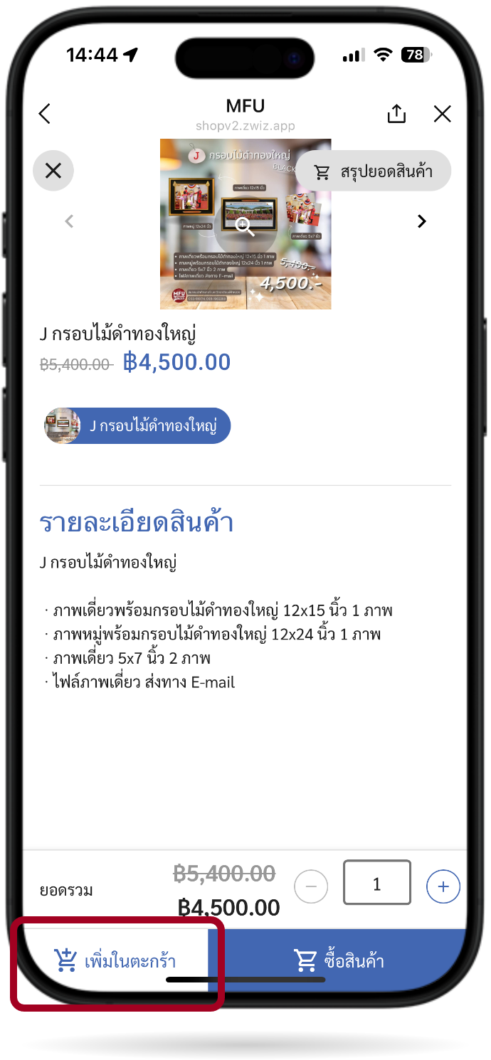 4. เลือกสินค้า เลือกจำนวน และกด “เพิ่มในตะกร้า”