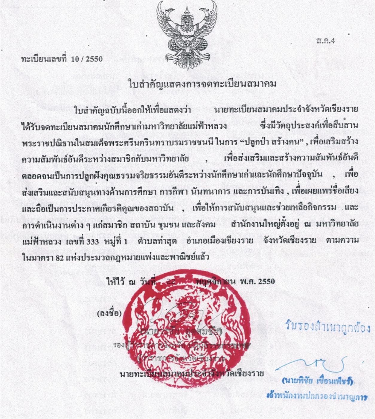 ข้อมูลสำหรับติดต่อและเดินทางมาที่สมาคมนักศึกษาเก่ามหาวิทยาลัยแม่ฟ้าหลวง